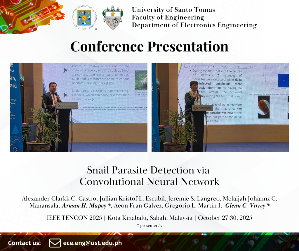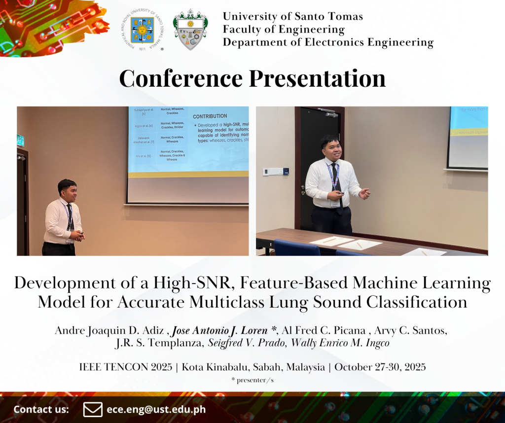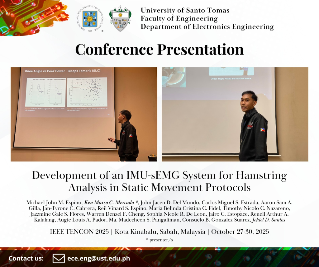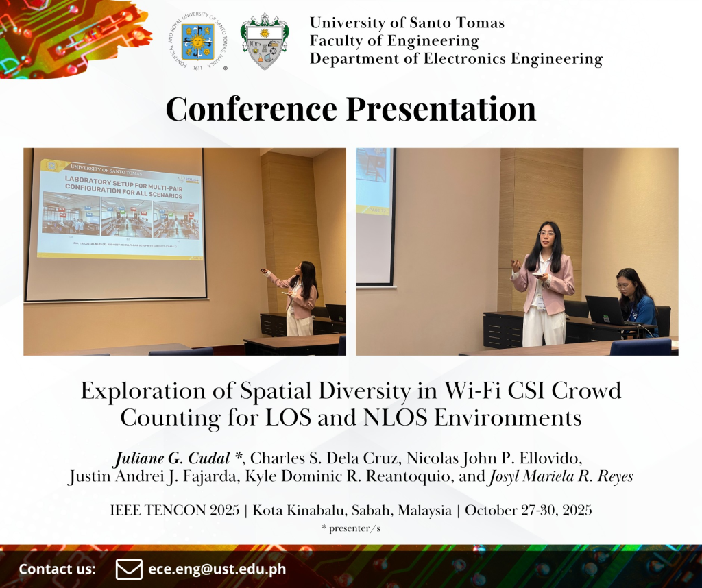 Department of Electronics Engineering delegates composed of students, alumni, and academic staff presented their papers in the IEEE TENCON 2025 held at the Sabah International Convention Centre (SICC) at Kota Kinabalu, Sabah, Malaysia from October 27 to 30, 2025.
