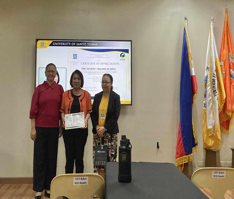 Prof. Eva Irene Y. Maglonzo, MD, Pedagogical Lead of the Faculty of Medicine and Surgery, focused on Physical and Cognitive Wellness in her lecture titled, “Navigating Retirement: Physical and Cognitive Wellness”.