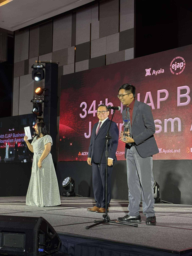 Three BA-Journalism alumni won awards in the 34th Business Journalism Awards, staged by the Economic Journalists Association of the Philippines (EJAP).