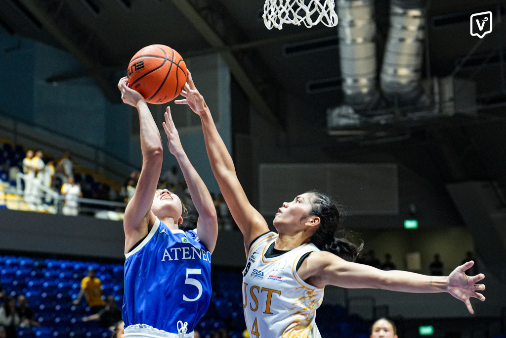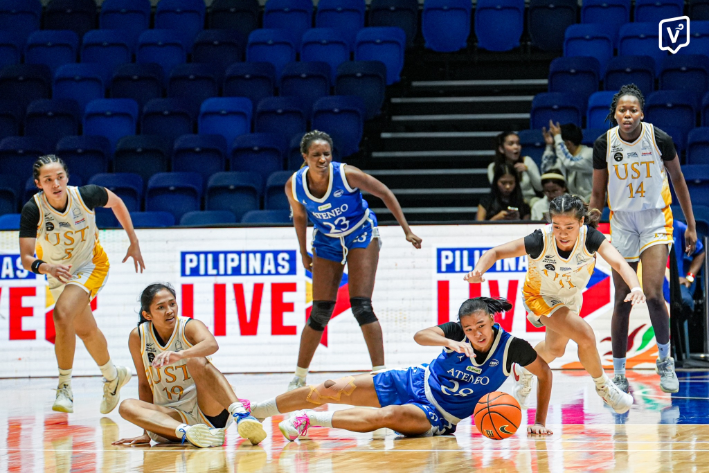 The UST Growling Tigresses snapped the clean slate of the Ateneo Blue Eagles, 75-66, at their nest in Katipunan. The Tigresses claimed the top spot with their own 4-0 record.